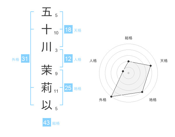五十川 茉莉以さんを姓名の画数から五運を鑑定
