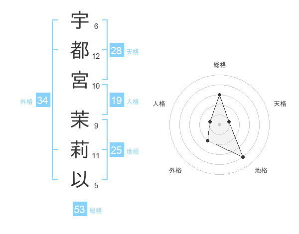 宇都宮 茉莉以さんを姓名の画数から五運を鑑定