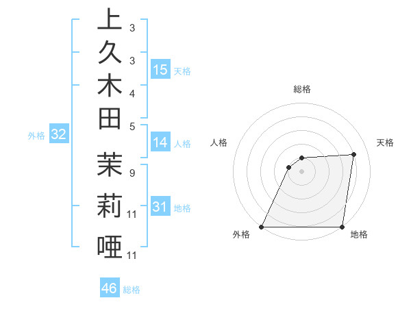 上久木田 茉莉唖さんの外格は32画の5点