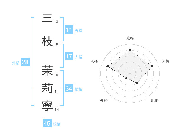 三枝 茉莉寧さんの総格は45画の4点!