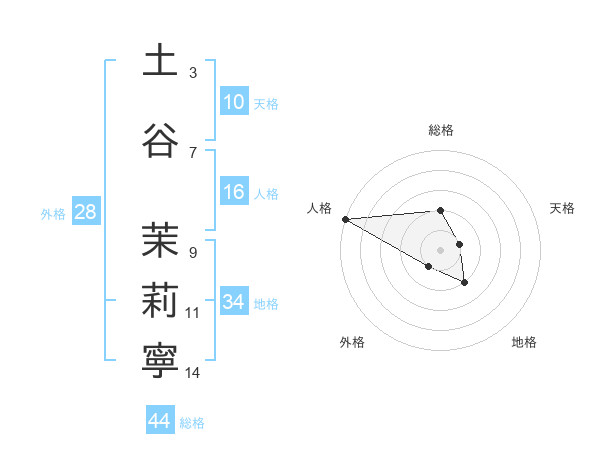 土谷 茉莉寧さんの総格は44画の2点!