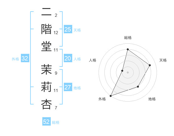 二階堂 茉莉杏さんの総格は52画の4点!