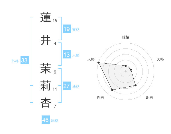 蓮井 茉莉杏さんを姓名の画数から五運を鑑定