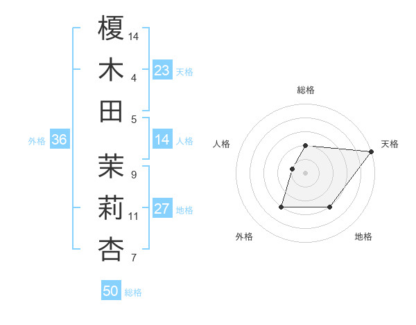 榎木田 茉莉杏さんを姓名の画数から五運を鑑定