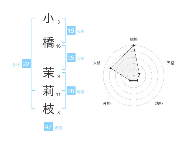 小橋 茉莉枝さんを姓名の画数から五運を鑑定