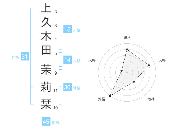 上久木田 茉莉栞さんを姓名の画数から五運を鑑定