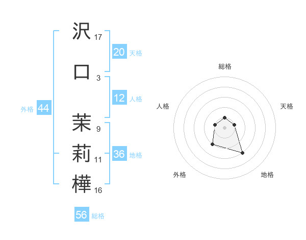 沢口 茉莉樺さんを姓名の画数から五運を鑑定
