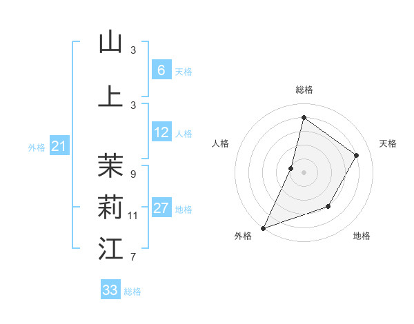 山上 茉莉江さんを姓名の画数から五運を鑑定