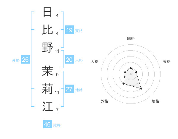 日比野 茉莉江さんを姓名の画数から五運を鑑定