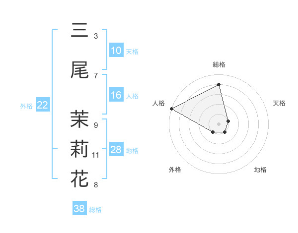 三尾 茉莉花さんを姓名の画数から五運を鑑定