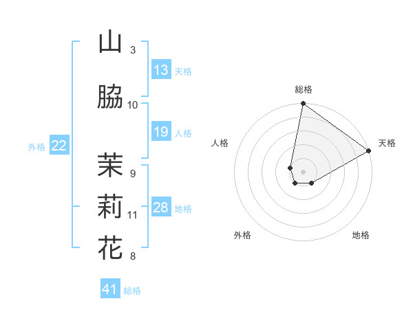 山脇 茉莉花さんを姓名の画数から五運を鑑定