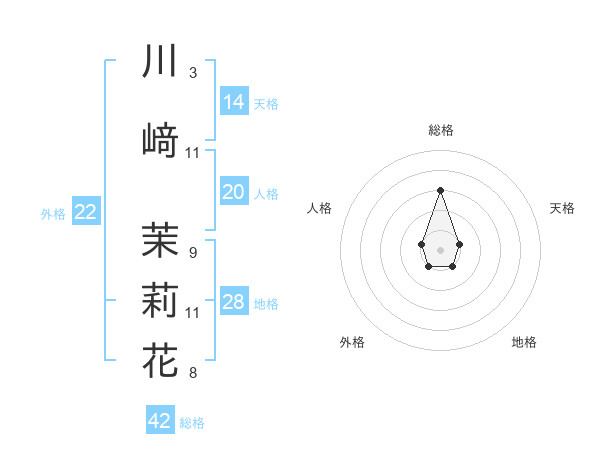 川﨑 茉莉花さんの総格は42画の3点!