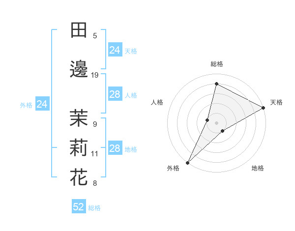 田邊 茉莉花さんを姓名の画数から五運を鑑定