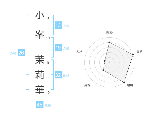 小峯 茉莉華さんを姓名の画数から五運を鑑定