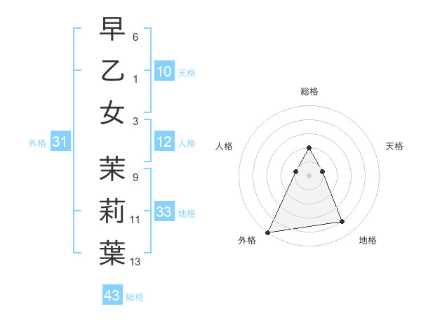 早乙女 茉莉葉さんを姓名の画数から五運を鑑定