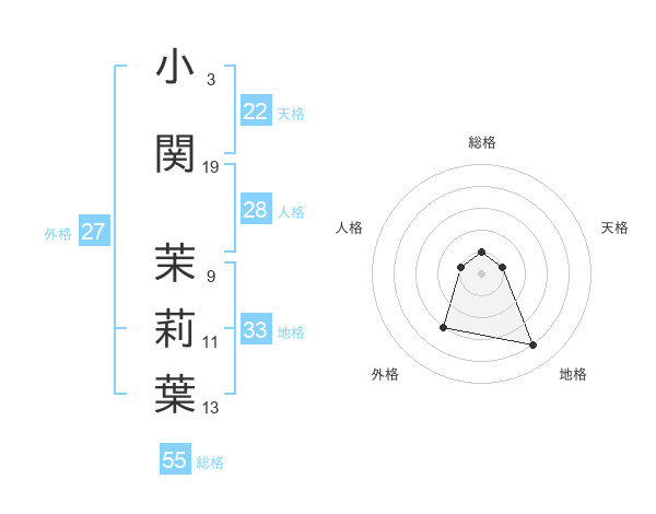 小関 茉莉葉さんを姓名の画数から五運を鑑定