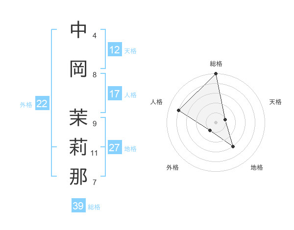 中岡 茉莉那さんを姓名の画数から五運を鑑定