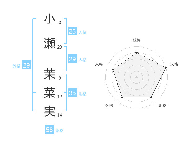 小瀬 茉菜実さんの天格は23画の5点!