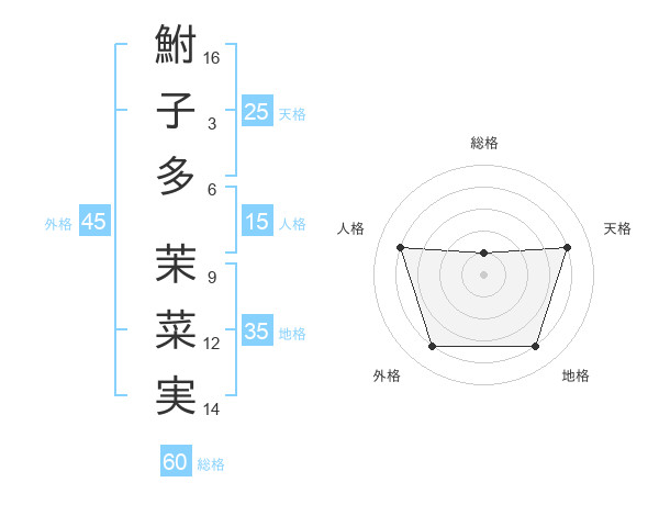鮒子多 茉菜実さんを姓名の画数から五運を鑑定