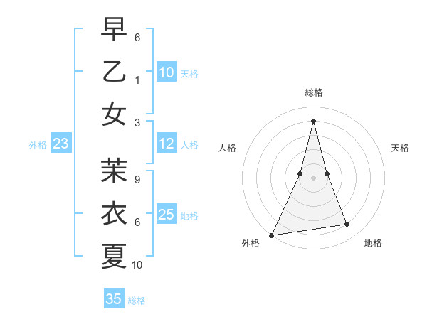 早乙女 茉衣夏さんの総格は35画の4点!