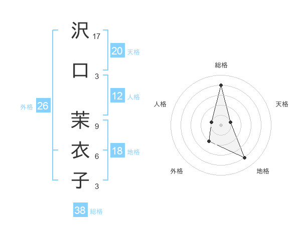 沢口 茉衣子さんの天格は20画の1点!