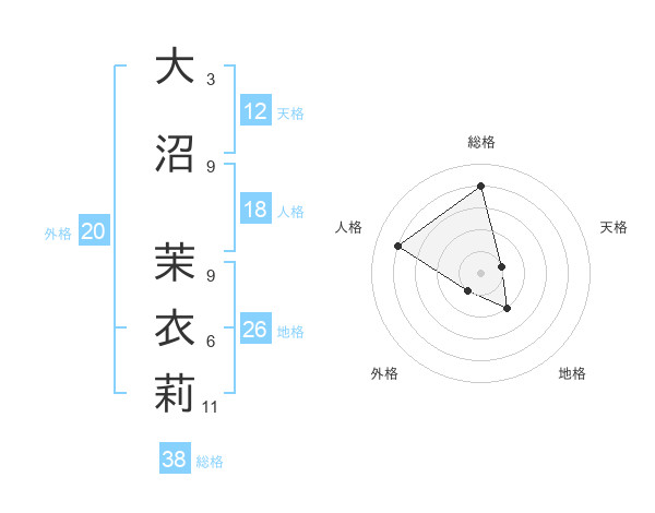 大沼 茉衣莉さんの総格は38画の4点!