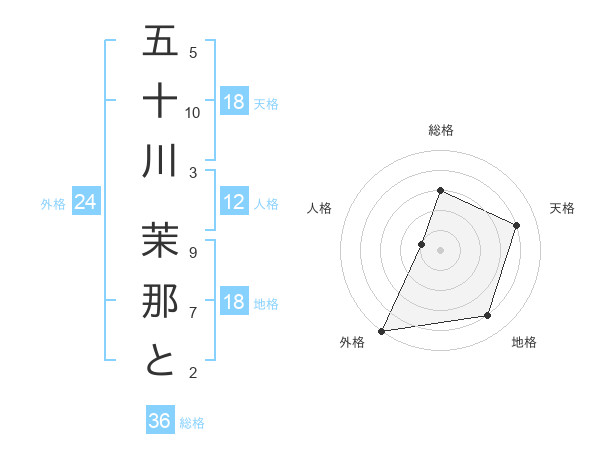 五十川 茉那とさんを姓名の画数から五運を鑑定