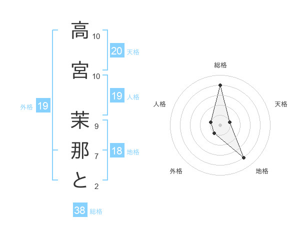 高宮 茉那とさんを姓名の画数から五運を鑑定
