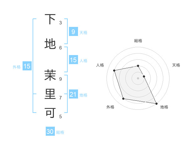 下地 茉里可さんの地格は21画の5点!
