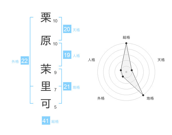 栗原 茉里可さんを姓名の画数から五運を鑑定
