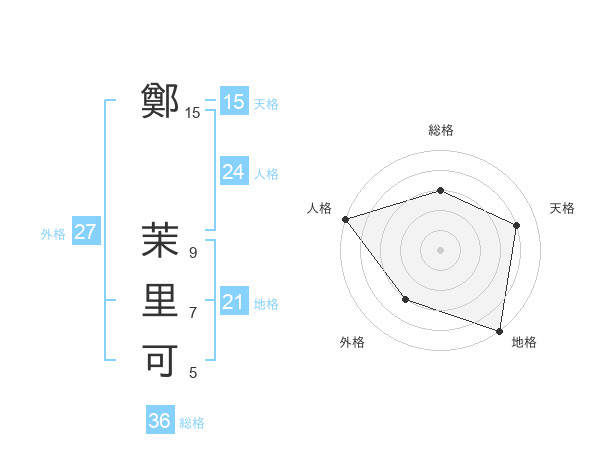 鄭 茉里可さんの外格は27画の3点!