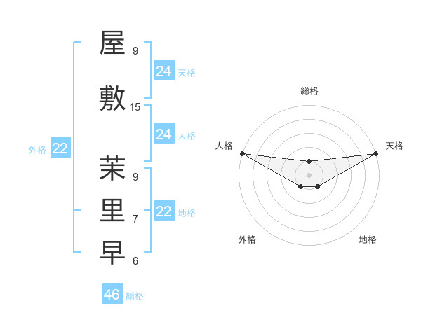 屋敷 茉里早さんの天格は24画の5点!