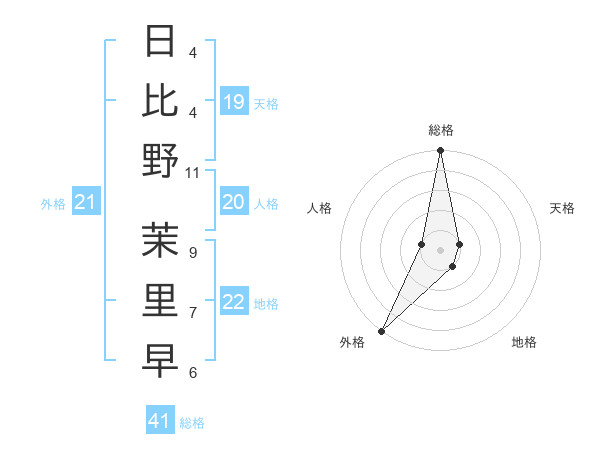 日比野 茉里早さんを姓名の画数から五運を鑑定