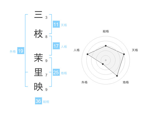 三枝 茉里映さんを姓名の画数から五運を鑑定