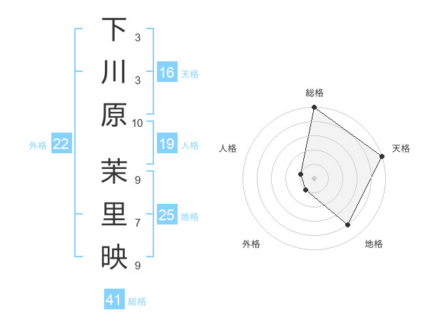 下川原 茉里映さんを姓名の画数から五運を鑑定