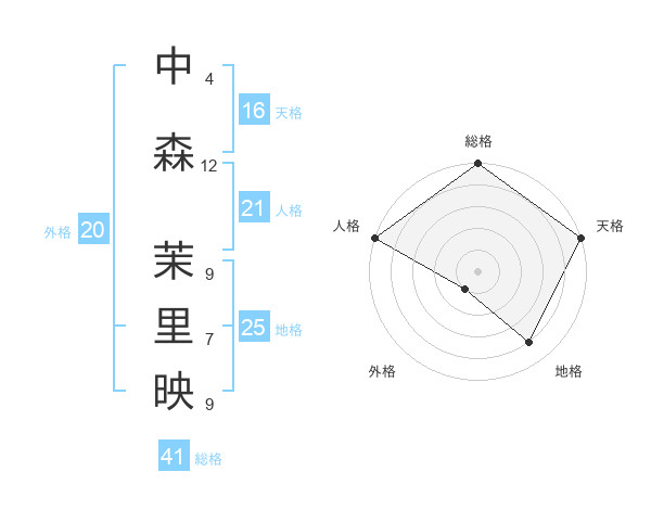 中森 茉里映さんを姓名の画数から五運を鑑定