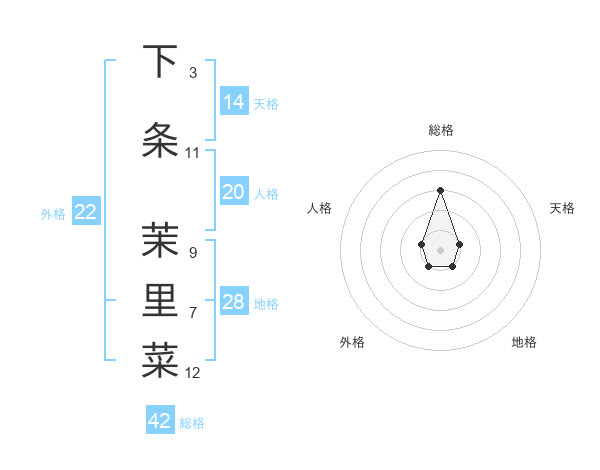 下条 茉里菜さんを姓名の画数から五運を鑑定