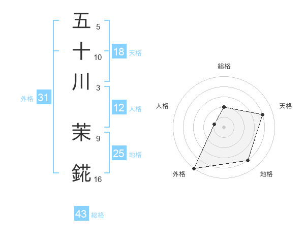 五十川 茉錵さんを姓名の画数から五運を鑑定