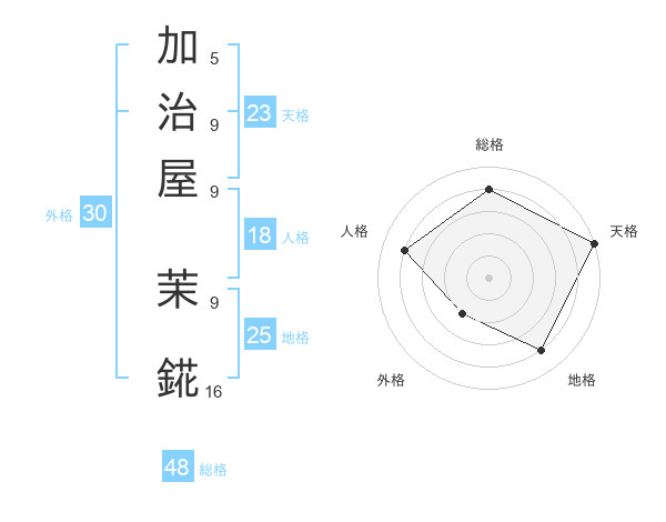 加治屋 茉錵さんの天格は23画の5点!