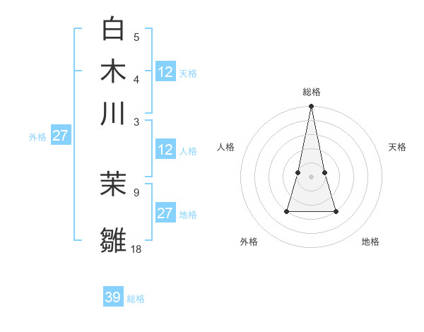 白木川 茉雛さんの総格は39画の5点!