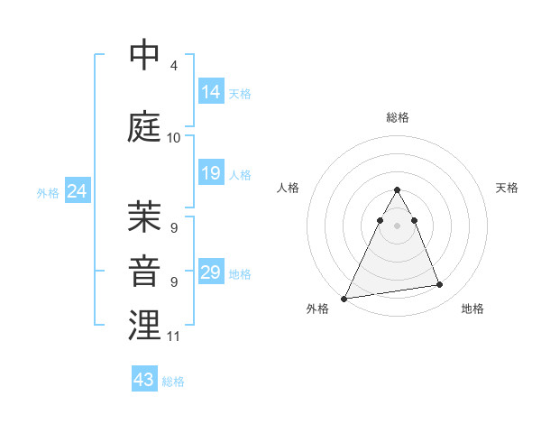 中庭 茉音浬さんの外格は24画の5点!