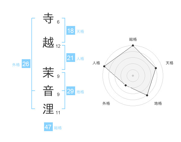 寺越 茉音浬さんの総格は47画の5点!