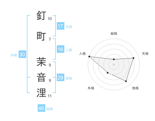 釘町 茉音浬さんを姓名の画数から五運を鑑定