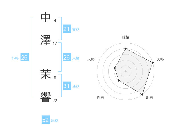 中澤 茉響さんを姓名の画数から五運を鑑定