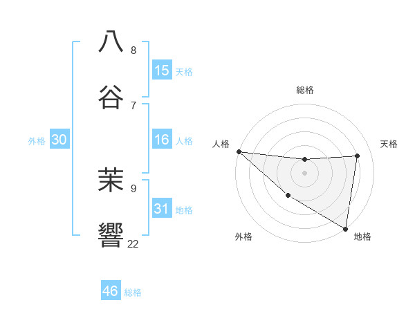 八谷 茉響さんの総格は46画の1点!