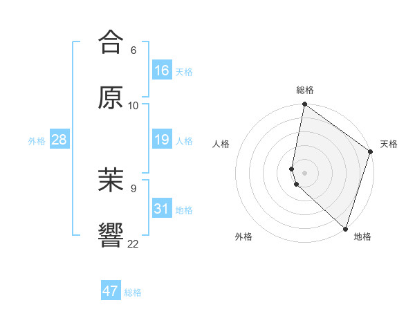 合原 茉響さんの外格は28画の1点!