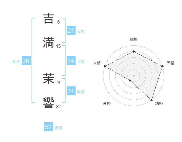 吉満 茉響さんの総格は52画の4点!