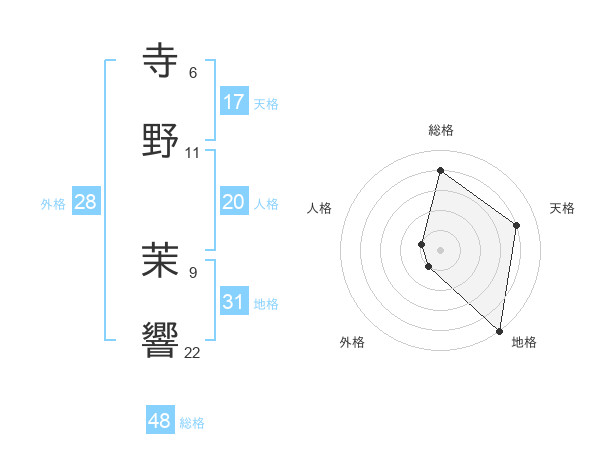 寺野 茉響さんの総格は48画の4点!