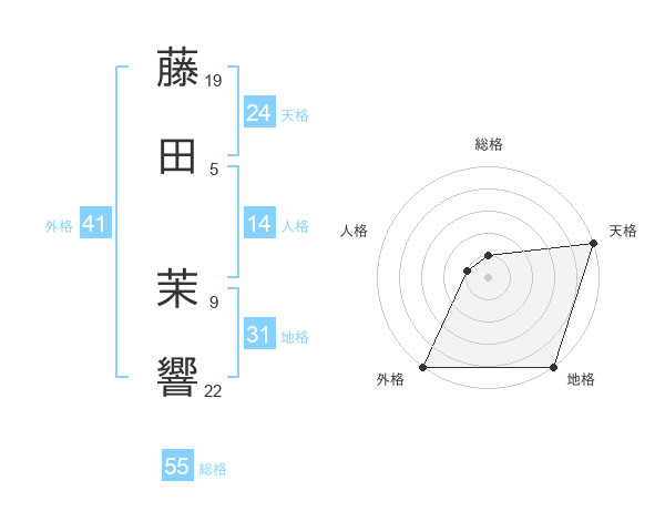 藤田 茉響さんを姓名の画数から五運を鑑定