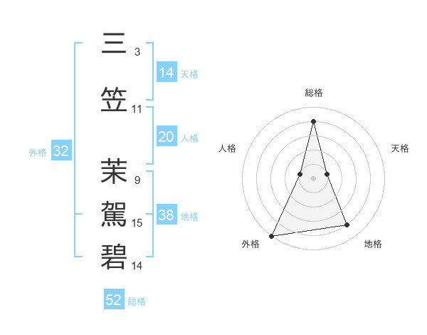 三笠 茉駕碧さんを姓名の画数から五運を鑑定